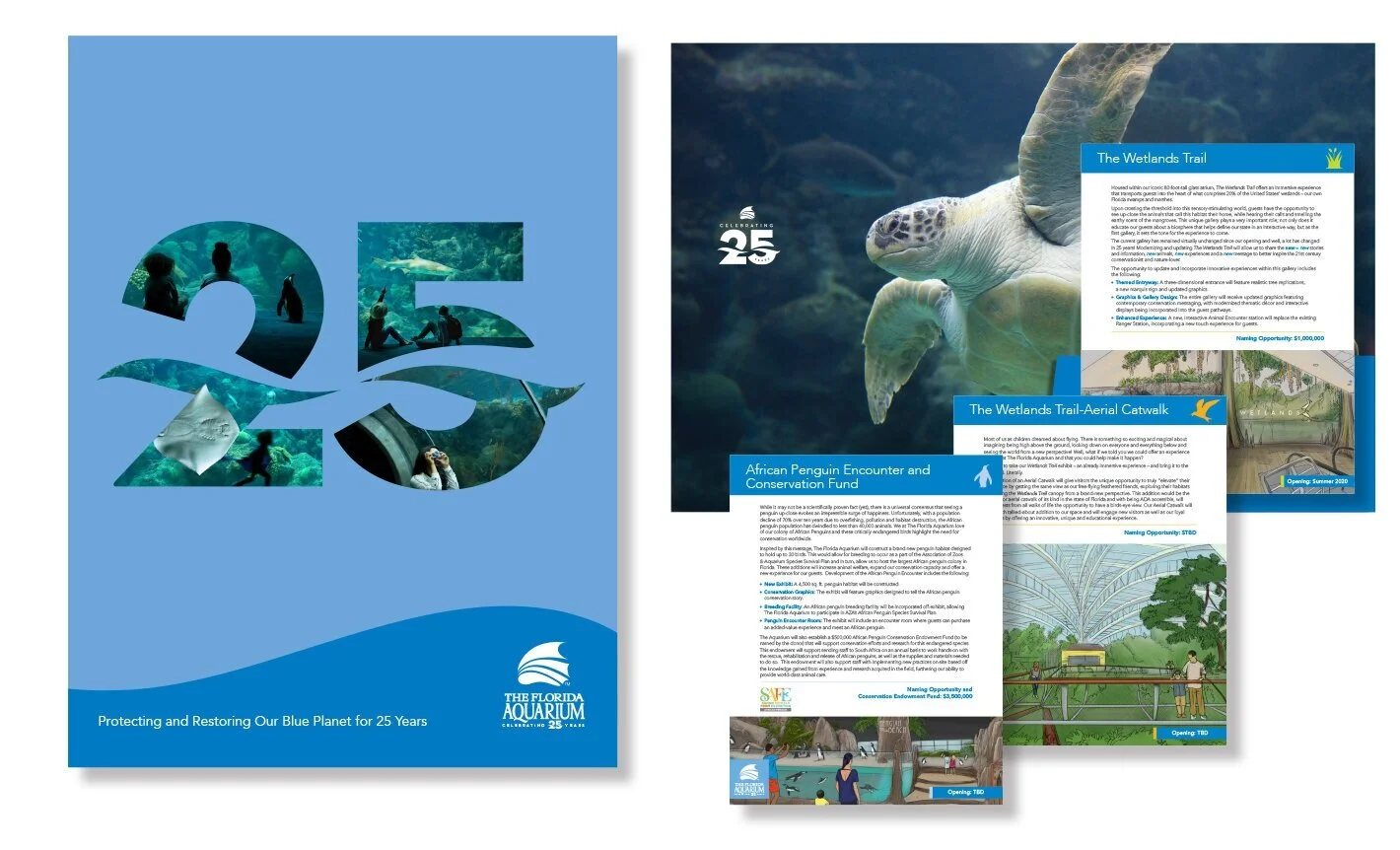 Featured work is the 25th Anniversary Capital Campaign Package, 2019 Annual Report and 2019 Strategic Plan.